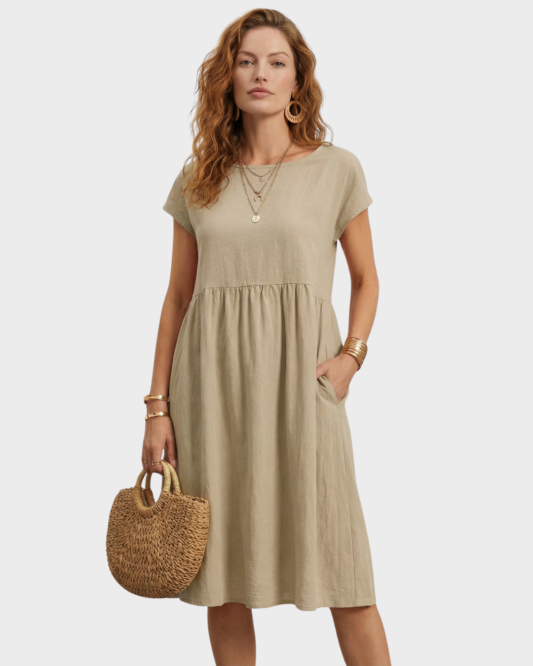 Vestido Midi Mujer con Cinturón Algodón Manga Kimono Elegante Primavera