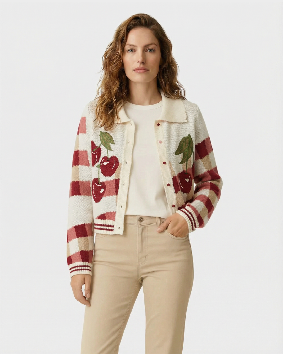 Cárdigan de punto con cerezas
