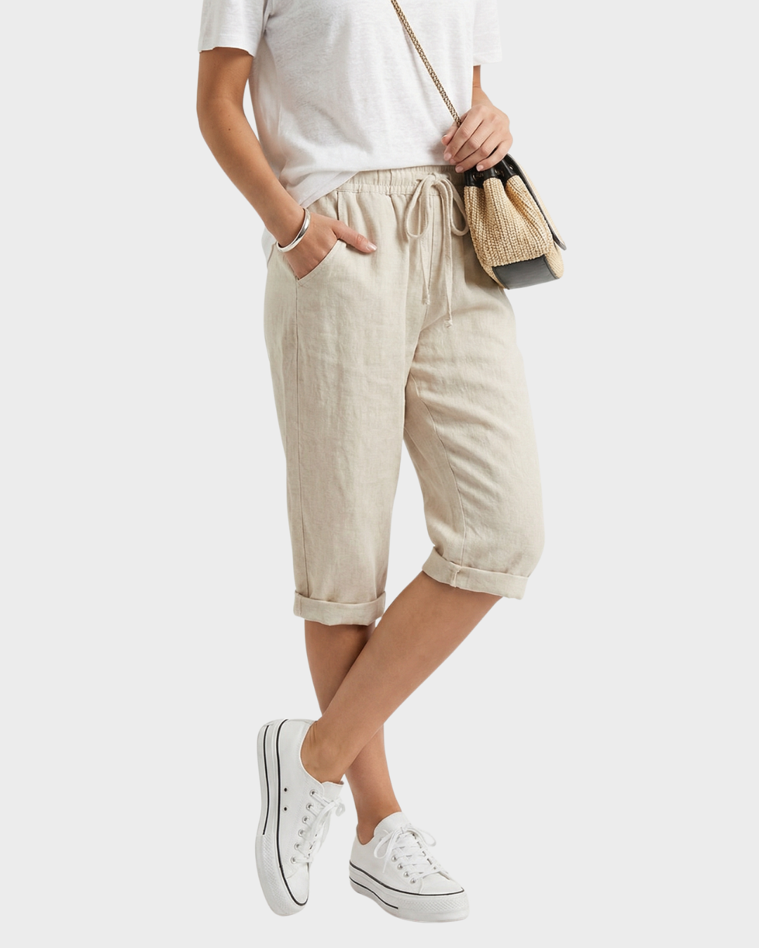 Pantalones cortos de lino con cintura elástica para mujer