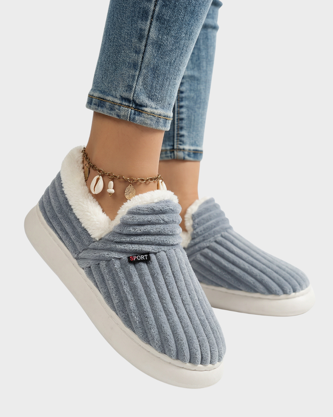 Estas zapatillas de felpa son la opción perfecta para mantener tus pies cálidos y cómodos. Con un diseño práctico y moderno, su material suave y acogedor las convierte en una excelente opción para usar en casa o durante momentos de descanso. Además, su suela antideslizante ofrece estabilidad y seguridad al caminar, haciendo de estas zapatillas una elección cómoda y funcional.