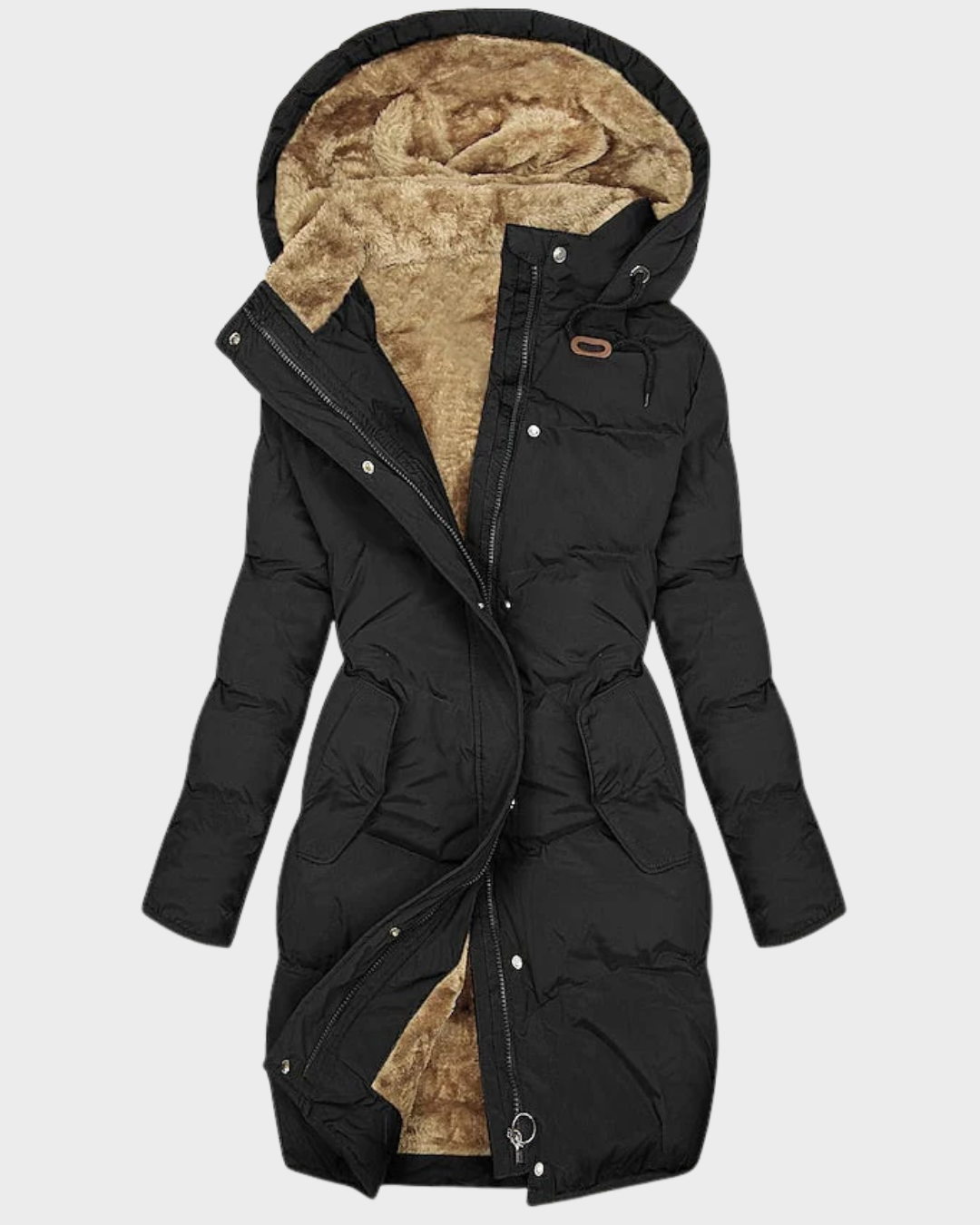Este abrigo acolchado largo con capucha está diseñado para ofrecer abrigo y comodidad durante el invierno. Su corte regular proporciona un ajuste cómodo que permite moverse con facilidad, mientras que el interior con forro tipo fleece ayuda a retener el calor en días fríos. Cuenta con cierre frontal completo, bolsillos funcionales y capucha amplia para una mayor protección frente al frío y el viento. Su tejido resistente es adecuado para el uso diario y fácil de mantener, ideal para climas invernales.