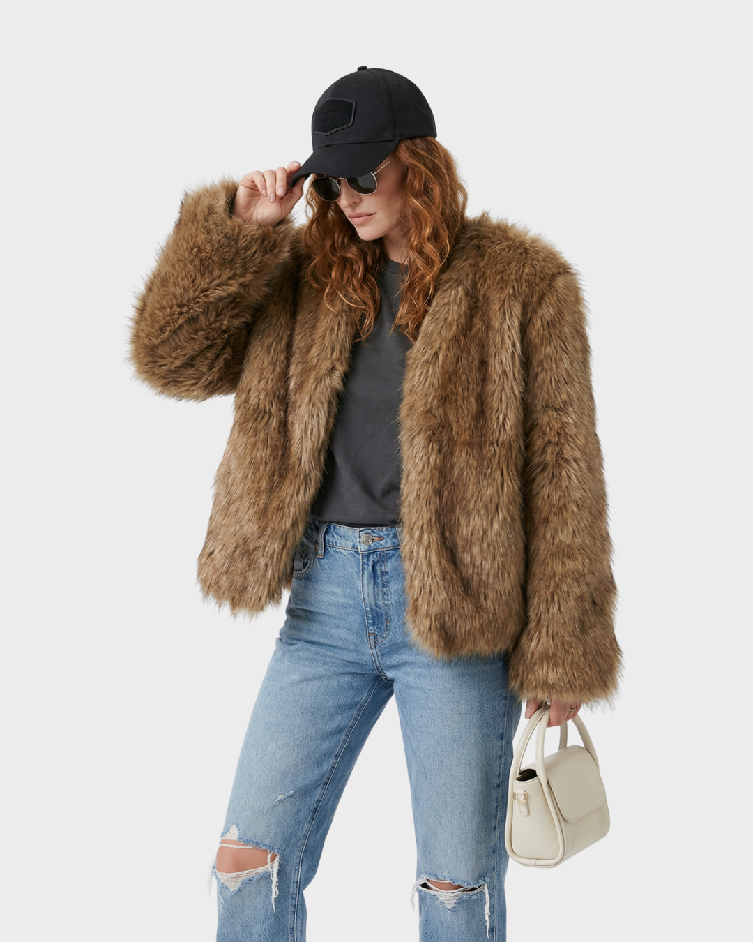 Chaqueta de pelo sintético para mujer, ideal para invierno